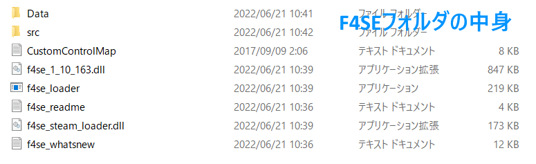 展開したフォルダの中身は👇こうなっているので、これらをすべてコピーして、ゲームフォルダ(Fallout4.exeのある場所・・・例:F:\Steam\steamapps\common\Fallout 4)の中にペーストします。