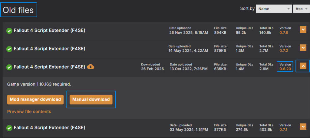 すると、それまで遊んでいたF4SEやmod達が最新バージョンに対応していなかった場合、プレイできなくなってしまうという恐ろしい結果になります。