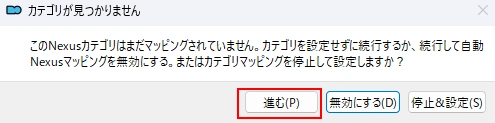ここで次のウィンドウが開きますが、[進む(P)]でオッケー。