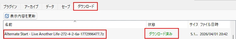 「Alternate Start – Live Another Life – SSE」の場合は、下の画像の一番上の赤枠に、